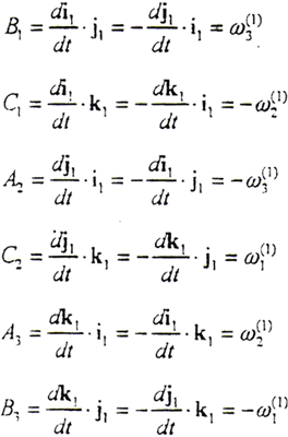 以i1、j1、k1分別點乘以上三式的兩邊,有