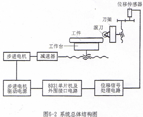 普通滾齒機(jī)的工作臺(tái)是用絲桿螺母及其手動(dòng)機(jī)構(gòu)來實(shí)現(xiàn)徑向進(jìn)刀的,可以在其上加設(shè)驅(qū)動(dòng)裝置,實(shí)現(xiàn)刀架沿工件徑向的相對(duì)運(yùn)動(dòng)要求。刀架的上下移動(dòng)也可以用伺服機(jī)構(gòu)驅(qū)動(dòng),實(shí)現(xiàn)刀架和工作臺(tái)兩軸驅(qū)動(dòng)的數(shù)字控制。但是刀架有較大的自重,其驅(qū)動(dòng)還要克服刀具切削力,因而需要較大的驅(qū)動(dòng)力;另外,普通滾齒機(jī)的結(jié)構(gòu)決定了刀架驅(qū)動(dòng)數(shù)控伺服機(jī)構(gòu)及減速機(jī)裝置沒有足夠的安裝空間,這將使機(jī)床的改造變得較為復(fù)雜。機(jī)床本身的刀架進(jìn)給運(yùn)動(dòng)鏈設(shè)計(jì)完美,可以方便、平穩(wěn)地實(shí)現(xiàn)進(jìn)給運(yùn)動(dòng)。因此本設(shè)計(jì)采用工作臺(tái)徑向進(jìn)給數(shù)控驅(qū)動(dòng)、位移傳感器檢測刀架位移的準(zhǔn)二軸數(shù)控方案。