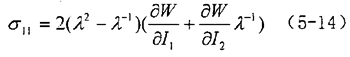 根據(jù)所取W的具體形式,可求出 的表達(dá)式,其中含有材料常數(shù),由試驗數(shù)據(jù)求得各伸長比及對應(yīng)的應(yīng)力,將多個試驗點的λ和σ11代入式(5-14),可求得這些材料常數(shù)值。