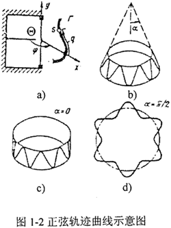 正弦活齒傳動(dòng)屬于活齒少齒差行星齒輪傳動(dòng),是一種利用鋼球和正弦滾道組成的滾動(dòng)嚙合變速裝置。按照正弦曲線軌跡所在回轉(zhuǎn)面的類型,正弦活齒傳動(dòng)可分為平面正弦活齒、圓柱正弦活齒及圓錐正弦活齒傳動(dòng)等,圖1-2所示為共扼正弦曲線軌跡的示意圖。當(dāng)φ從0到2π變化,正弦曲線Γ在回轉(zhuǎn)面上被描述出來(lái)。如果Θ代表主動(dòng)軸坐標(biāo)系,則曲線Γ表示主動(dòng)軸回轉(zhuǎn)面上的正弦曲線,若Θ代表殼體坐標(biāo)系,則曲線Γ表示殼體回轉(zhuǎn)面上正弦曲線;剞D(zhuǎn)面可以是錐面(圖1-2b)、圓柱面(圖1-2c)、平面(圖1-2d),還可以為拋物面、雙曲面、超環(huán)面等。若按與活齒嚙合的正弦滾道數(shù)目劃分,正弦活齒傳動(dòng)可分為雙正弦活齒傳動(dòng)(圖1-3)和三正弦活齒傳動(dòng)(圖1-4)。