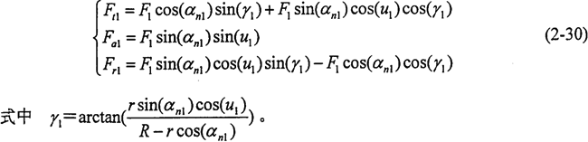 活齒對主動軸外正弦滾道作用力的圓周力分量Ft1、軸向力分量Fa1、徑向力分量Fr1的大小分別為