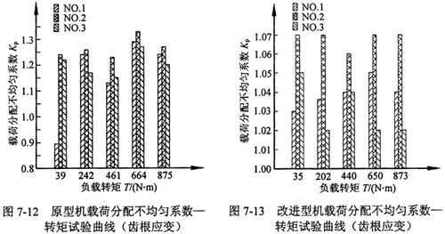 對兩級三環(huán)減速器的原型機(jī)和改進(jìn)型機(jī)的環(huán)板齒根彎曲應(yīng)力和環(huán)板薄弱部位的應(yīng)力進(jìn)行了測試,并討論了載荷均衡情況。結(jié)果表明:改進(jìn)型機(jī)具有很好的均載效果,載荷分配不均勻系數(shù)由均載前的1.33降為均載后的1.07。這個數(shù)值較基本型三環(huán)減速器的載荷分配不均勻系數(shù)1.7小的多。