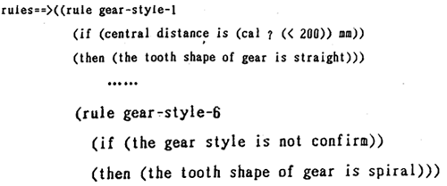 規(guī)則l的條件項,初次使用時,由于中心距尚未確定,不能觸發(fā)運用。系統(tǒng)采用的方法是先用初次選用的齒形參與傳動計算,待求出中心距時再次調用該規(guī)則集進行推理。若于原來的假設發(fā)生沖突,撤銷原假設并以新事實重新進行計算。
