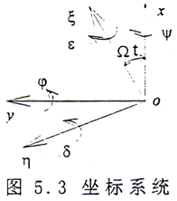 如果將(5.11)式變換到旋轉(zhuǎn)坐標系oξηz中,則有