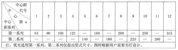 表1 中心距及其代號(hào) 單位:mm