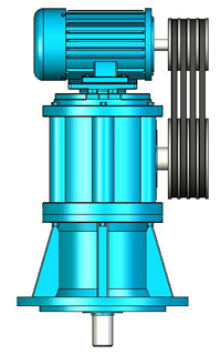本系列減速機是采用尼曼型圓柱蝸桿嚙合付傳動,蝸桿可磨削,提高加工精度,凸凹齒廓嚙合,使圓周速度方向的夾角增大,有利于產(chǎn)生最佳潤滑油膜,改善嚙合狀況,提高了齒面抗疲勞強度,延長使用壽命;凸凹齒嚙合曲率較。ㄇ拾霃捷^大),降低了接觸能力,提高承載能力;輸出軸軸承間距較大,有利于提高輸出剛度,增加傳動穩(wěn)定性,無需另置支承軸承,簡化了結構,縮小體積,提高長軸攪拌能力;Ⅲ型輸出軸采用帶有內錐面的空心結構,攪拌軸穿過空腔以錐面定位,軸頭用螺母鎖定即可,裝配十分方便快捷,便于維修;電機經(jīng)帶輪減速后再連于減速機,既增加了速比范圍,又起緩沖作用。