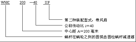 ![]() ![]() WH系列圓弧齒圓柱蝸輪減速機(jī)型號(hào)說明及標(biāo)記示例