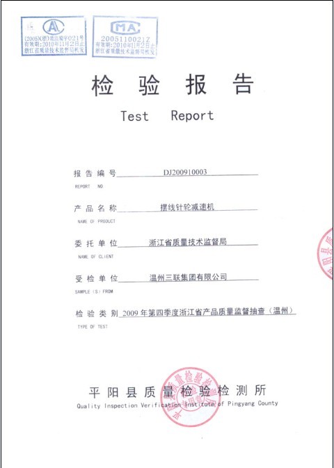 發(fā)證機(jī)構(gòu):天津減速機(jī)股份有限公司中心實(shí)驗(yàn)室