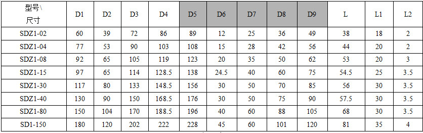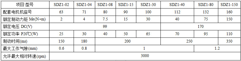 SDZ電機(jī)制動器詳細(xì)參數(shù)