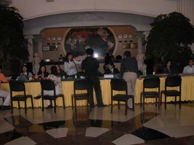 | 中國通用機械工業(yè)協(xié)會第五屆會員代表大會即將在云南開幕.會議地址在美麗的昆明云安會都舉行,目前會議報到工作正在進行. 昆明云安會都坐落于昆明風(fēng)光秀麗的風(fēng)景名勝區(qū)---西山"睡美人"腳下,碧波蕩漾的滇池湖畔.云安會都庭院寬敞,綠樹成蔭,鮮花四季,古榕蒼翠,小橋流水,魚躍荷池,鳥鳴翠柳.中國通用機械工業(yè)協(xié)會第五屆會員代表大會報道接待工作就在這人與自然和諧相生的景象中積極的展開.