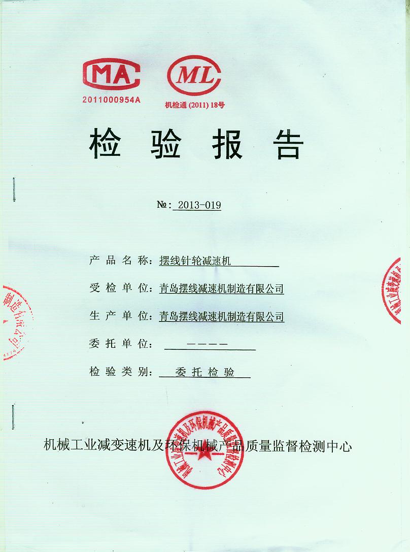 青島擺線減速機制造有限公司產(chǎn)品質(zhì)量檢測報告